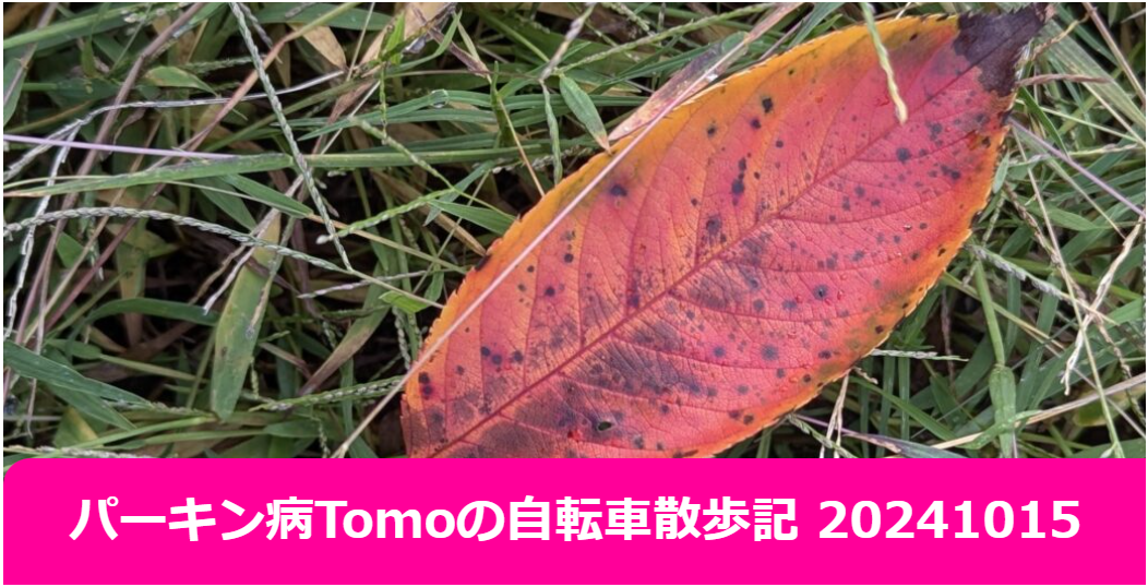 パーキン病Tomoの自転車散歩記 20241015この期間は、かなり凹む期間になってしまった。自分の年齢的な衰えや病気の進行が進んでるのかはわからないが、現在の所は、それについて思い詰めてもいいことはないので、あまり考えないことがベストであると自分の中で決定付けた。少しだけ触れると、就労支援B型の作業で、喋りながらの作業が出来なくお喋りだけで作業が遅いや、工程の多い作業に時間がかかるなど、今まであまり意識してない所を作業所の人から指摘され、無茶苦茶凹む。その上に、担当医に少し話したがパーキンソン病では、よくあることなので、喋らずに作業するしかないというコメントで精神的にダメージが広がった。この...
